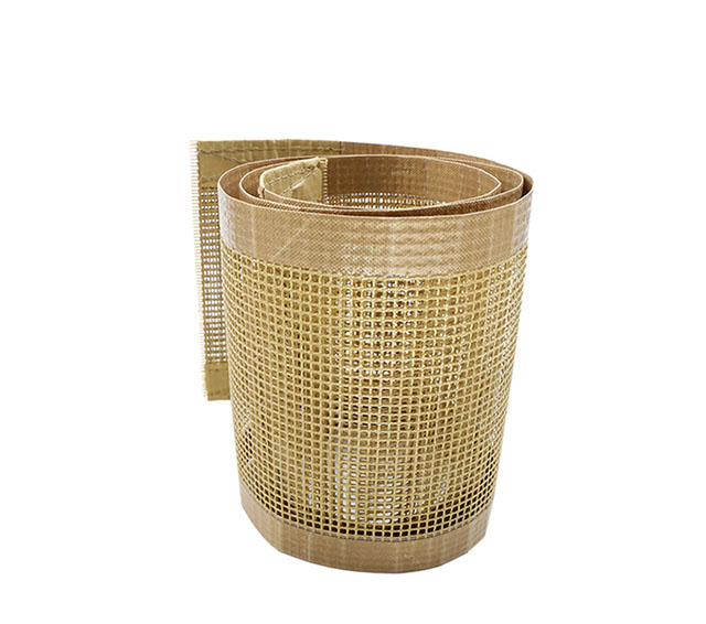 - 產品簡述:凱夫拉(芳綸)網帶,是芳綸網格浸漬鐵氟龍而成,主要特點是經緯向強度大,可用于需要大強度的高溫烘干機器。